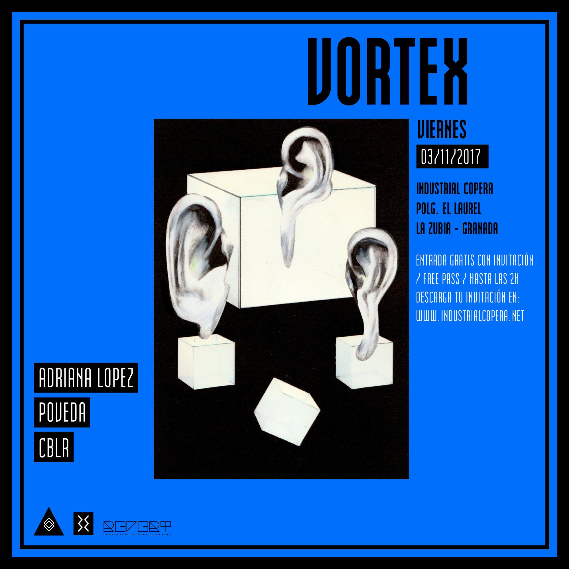 Tras el rotundo éxito de la primera edición de Vortex, concepto mas underground de las noches que Industrial Copera nos ofrece, llega un nuevo asalto, con Adriana Lopez como principal espada el próximo viernes 3 de noviembre.